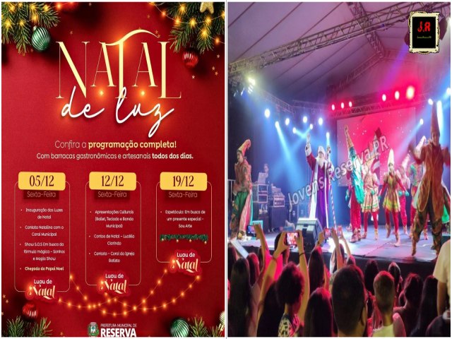 A cidade de Reserva está prestes a vivenciar a magia do Natal com a realização do evento "Natal de Luz". A Prefeitura Municipal, por meio da Secretaria de Educação, Cultura e Esporte, anunciou uma programação emocionante, que será realizada em três edições temáticas do "Luau no Parque", sempre às sextas-feiras de dezembro, no Parque das Famílias.